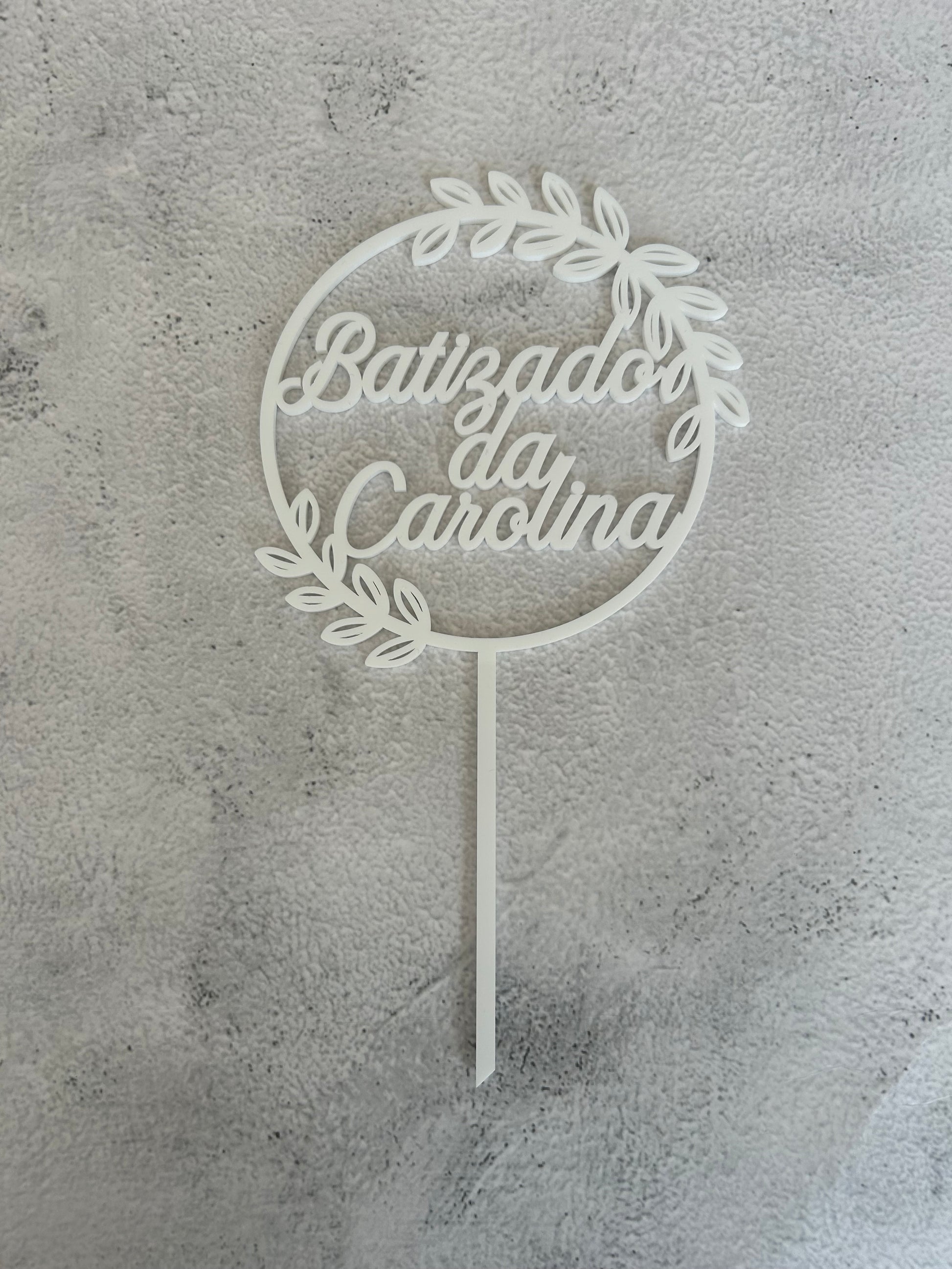 Topper de bolo Batizado em acrílico espelhado dourado (também disponivel em acrílico Prateado, Rose Gold) ou acrílico simples (branco, rose pastel, rosa fosco bebé). Informação sobre cor desejada , que não seja espelhado, e sobre o nome personalizado pode adicionar num comentário no Checkout.